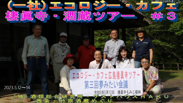 小早川隆景の縁で結ばれた地域を巡り、棲眞寺・椋梨城址・新井高山城を回って今回のツアーでは竹原市の長生寺・西方寺・照蓮寺などを訪ね隆景が学びの場として創建し若者を育てることにも心血を注いでいた、往時を感じることの出来るお寺であった。 また、竹鶴酒造などまちなみが綺麗にに保存されている通りでは、塩田や酒、味噌など栄えてきた歴史が刻み込まれた街並みが往時を偲ばせる。 さらに、西条では賀茂鶴酒造など7つの酒蔵を巡り、軟水仕込みで美味しい酒を造ってきた西条の歴史と技術の素晴らしさを学んだ・・・とても収穫の多いツアーとなりました ご参加者のみなさま並びに地元ガイドの方そして三原市大和支所やSDGs4Kのみなさまに感謝申し上げます