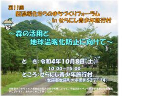 日時:2023年10月14日(土)~15日(日) 場所:滋賀県高島市朽木麻生443 森林公園くつきの森 自然研修センター